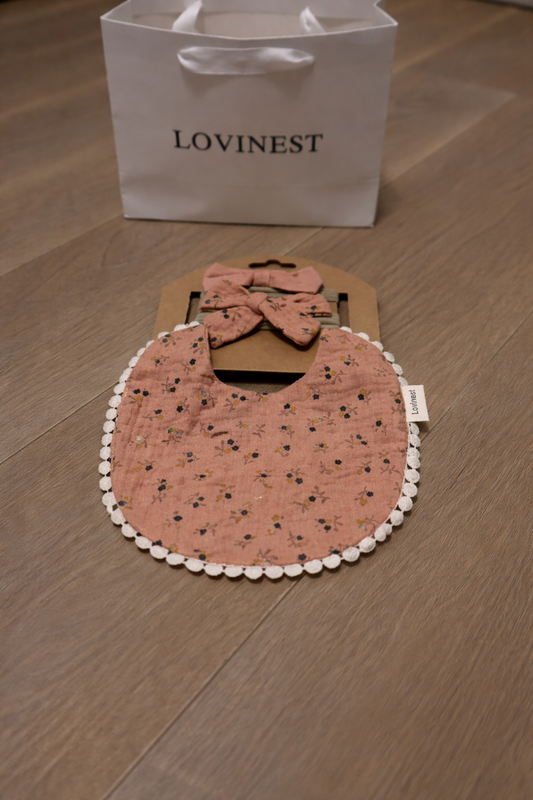 Bavoir avec bandeau Lovinest doux et absorbant rose